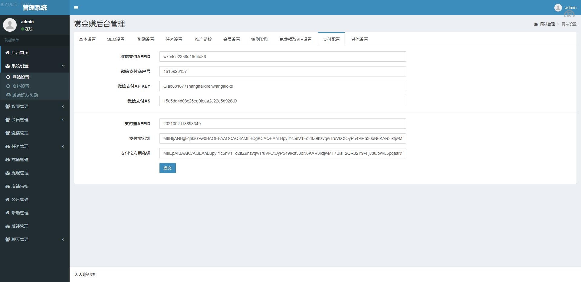 6、提交页面支持任务说明链接跳转、任务要求图上传、审核图提交等功能,完成后可通过支付宝转账完成付款,人工审批时会记录提现信息。