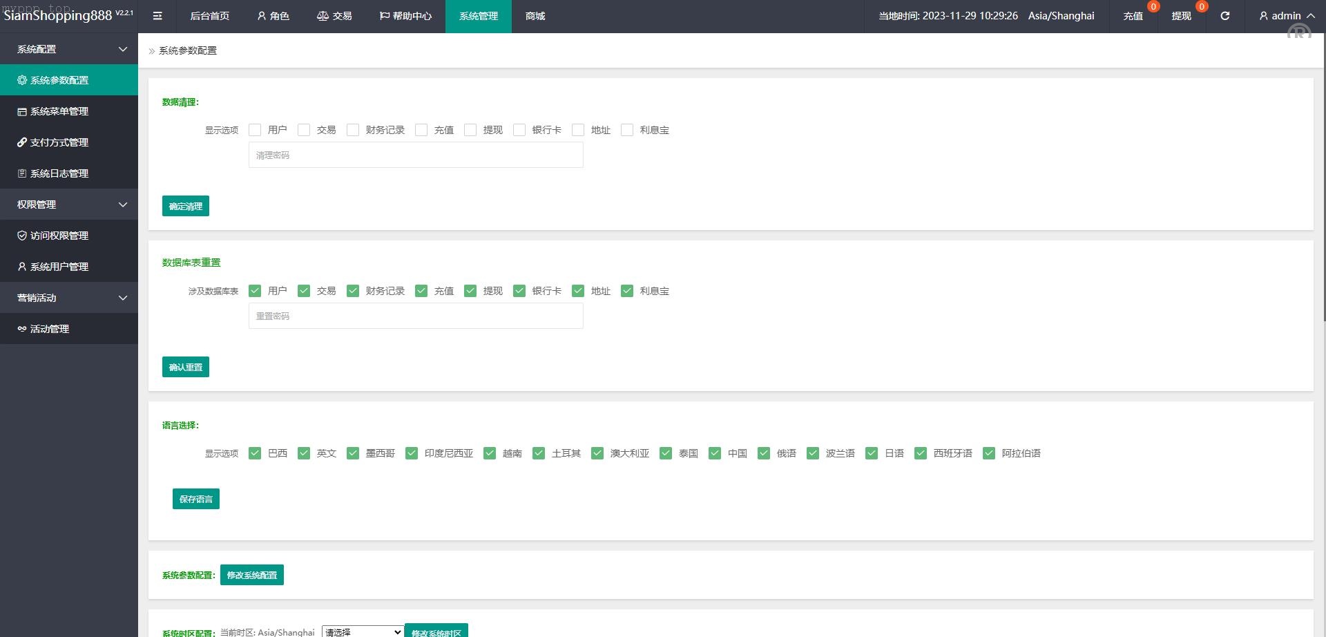 系统支持叠加租赁功能,前端具备多国言切换能力。不过,前端部分泰语内容尚未完全实现多国言化。