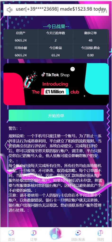 做单限制,全局一个会员等级,可自己设置多少任务订单,做满订单后 做单限制变为订单清理,点击清理后 开始新的一轮,如果未完成 显示生效中