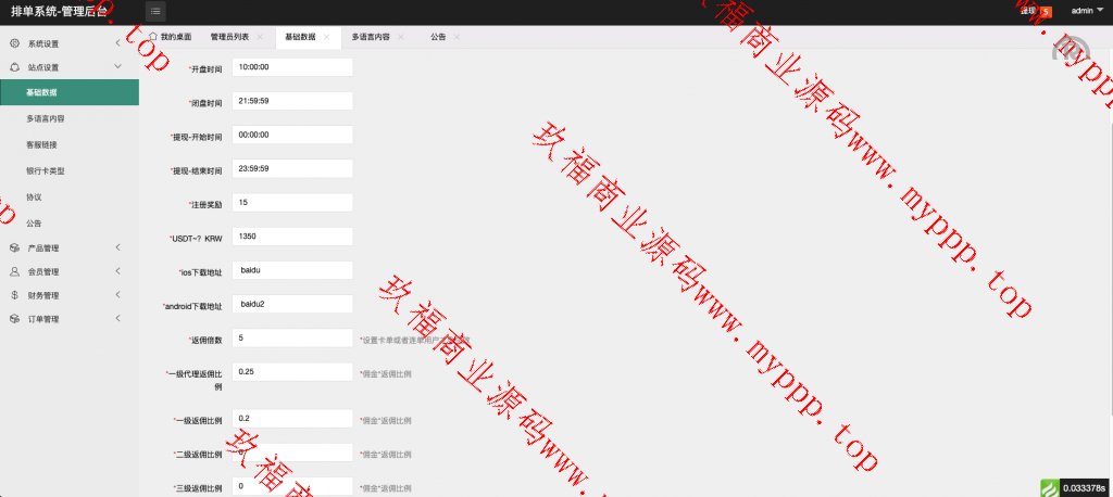 Japanese, Korean and Vietnamese languages are added to the second version, and the annotation part is not yet enabled. Added multi-language announcement function on the home page to improve user experience. Added customer service link to facilitate users to contact customer service. Added check-in function to encourage users to log in and participate in activities every day. Introduced the VIP purchase function, providing more exclusive privileges. Added the carousel game, the background can set the number of draws for users and control the winning products. A new button to download apps is added to the "My" page, which is convenient for users to download and install quickly. The automatic USDT conversion function has been added to improve the convenience of trading. When setting up consecutive orders, users must complete the set conditions for consecutive orders in order to get rebates. The logic of automatic order scheduling has been modified, and the amount of robbing orders will float within the range of 30%-80% according to the balance.