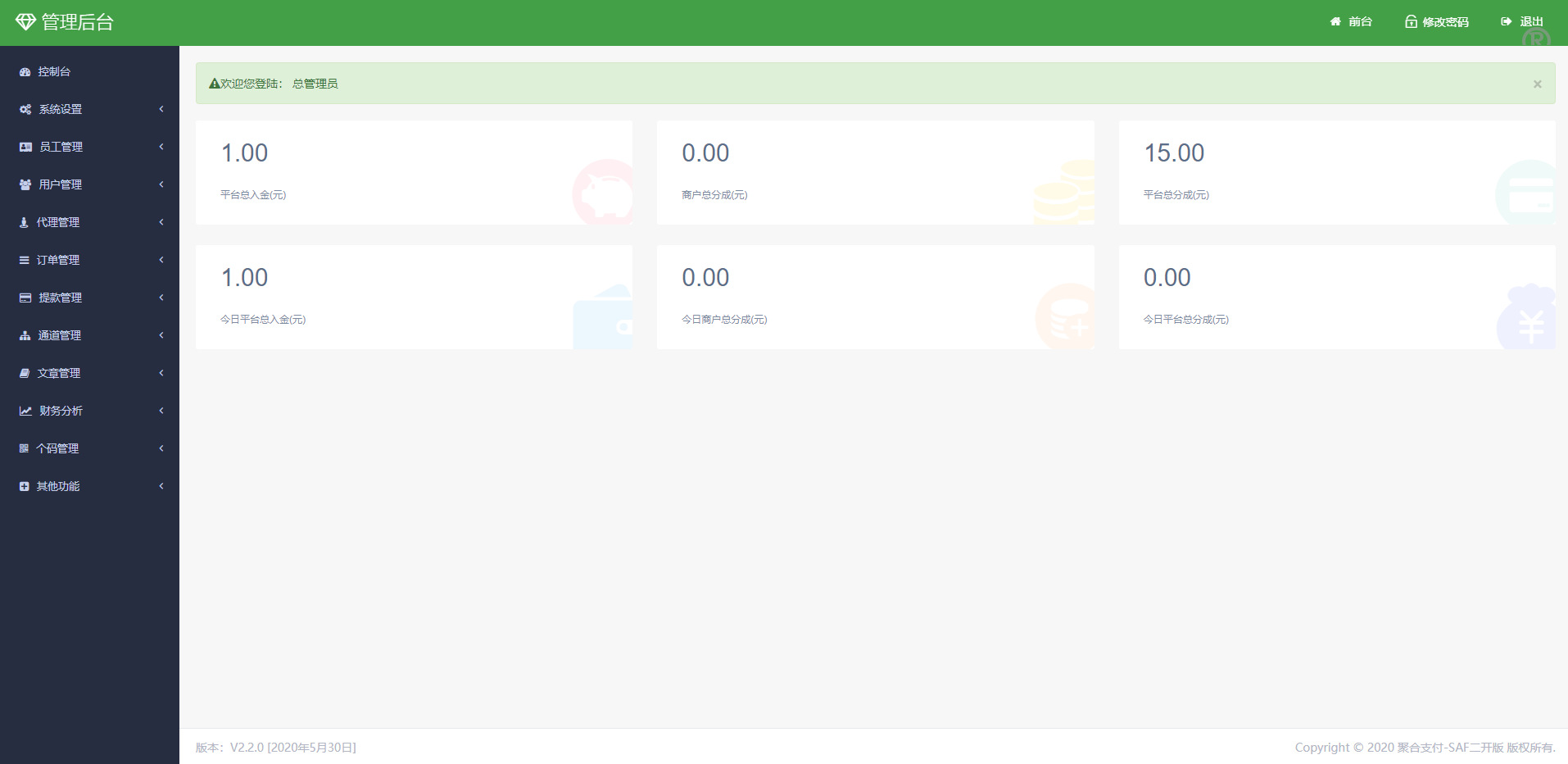 관리 배경 : 바람 제어 설정, 이메일 설정, SMS 설정, 예약 작업, 데이터 정리, 메뉴 관리, 사용자 카테고리 관리, 직원 계정 관리, 권한 구성, 사용자 관리, 불만 마진 설정, 상담원 관리, 상담원 수수료 기록, 주문 관리, 재 알림, 수동 보충, 수동 정산, 결제 정산, 결제 상품, 입금 채널, 결제 채널, 간편한 결제 인터페이스는 기사와 호환 / /...과 함께 사용할 수 있습니다. 공지사항 관리, 재무 분석, 코드 관리(주문 음성 알림 + 수동 확인 콜백), 웹사이트 템플릿, 현금 인출 음성 알림, 이상 주문 확인, 수동 주문 시스템 등.