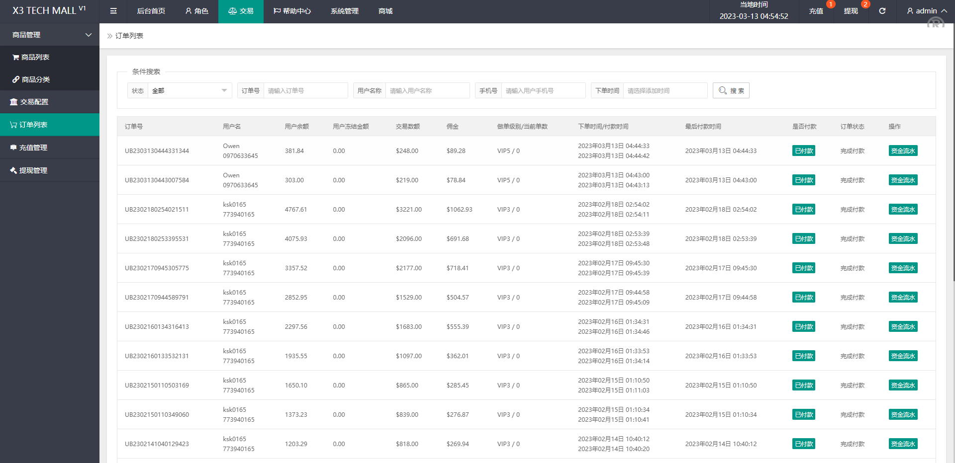 带三级分销,权限代理后台,充值提现优先完美后台查询功能